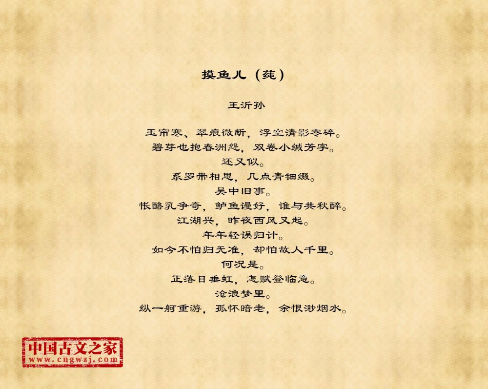 玉帘寒、翠痕微断,浮空清影零碎。碧芽也抱春洲怨,双卷小缄芳字。还又似。系罗带相思,几点青钿缀。吴中旧事。怅酪乳争奇,鲈鱼谩好,谁与共秋醉。江湖兴,昨夜西风又起。年年轻误归计。如今不怕归无准,却怕故人千里。何况是。正落日垂虹,怎赋登临意。沧浪梦里。纵一舸重游,孤怀暗老,余恨渺烟水。