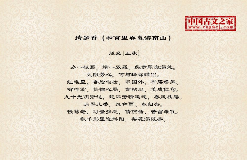 《绮罗香(和百里春暮游南山)》的原文打印版(赵必{王象})