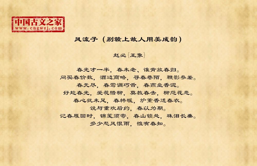 好趁春光,爱花惜柳,莫教春去,柳怨花悲。