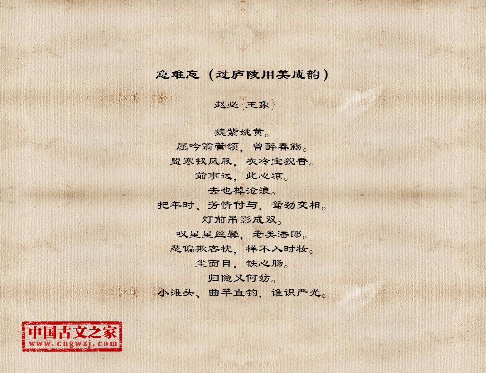 《意难忘(过庐陵用美成韵)》的原文打印版(赵必{王象})
