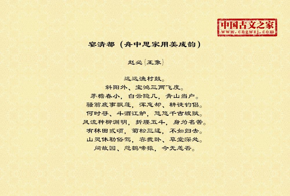 《宴清都(舟中思家用美成韵)》的原文打印版(赵必{王象})