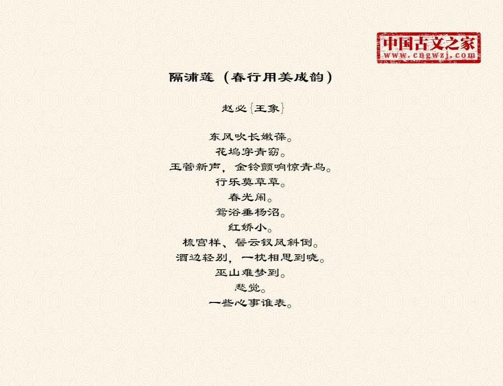 《隔浦莲(春行用美成韵)》由赵必{王象}创作