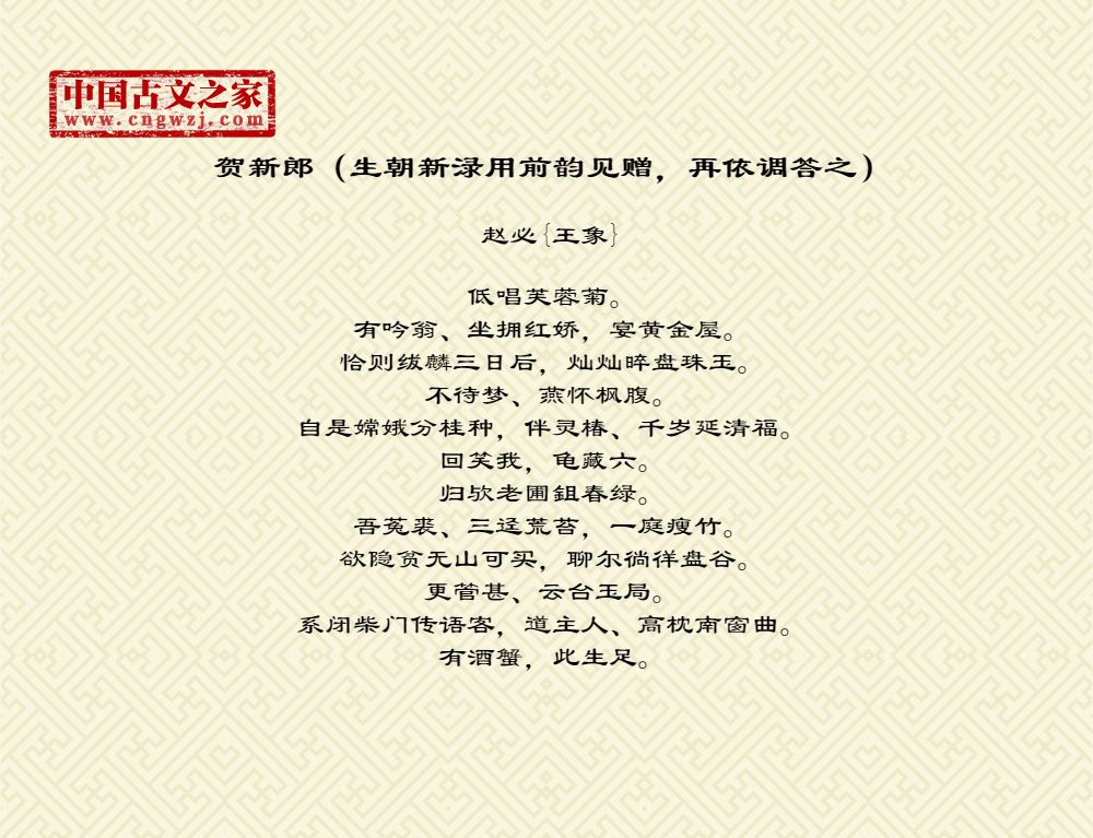 《贺新郎(生朝新渌用前韵见赠,再依调答之)》的原文打印版(赵必{王象})