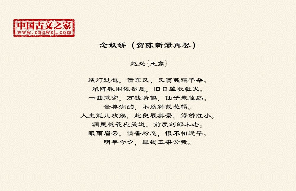 《念奴娇(贺陈新渌再娶)》的原文打印版(赵必{王象})