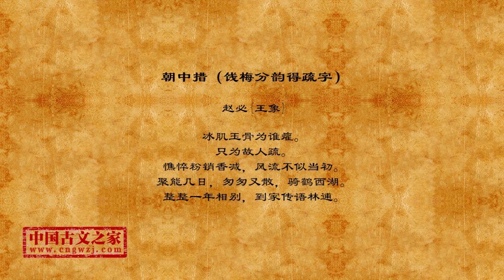《朝中措(饯梅分韵得疏字)》的原文打印版(赵必{王象})