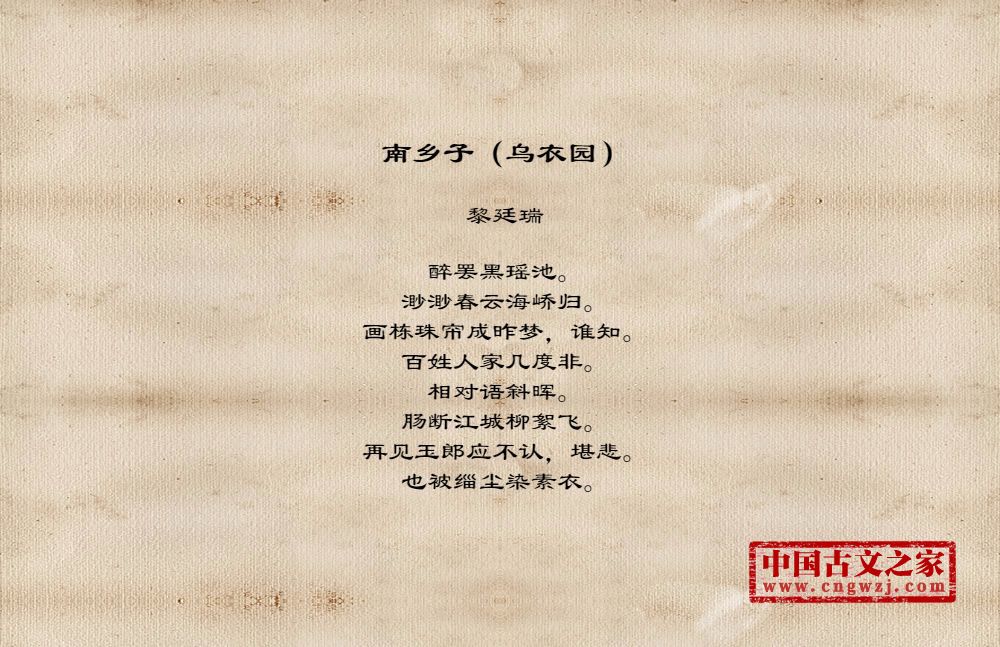 《南乡子(乌衣园)》的原文打印版(黎廷瑞)