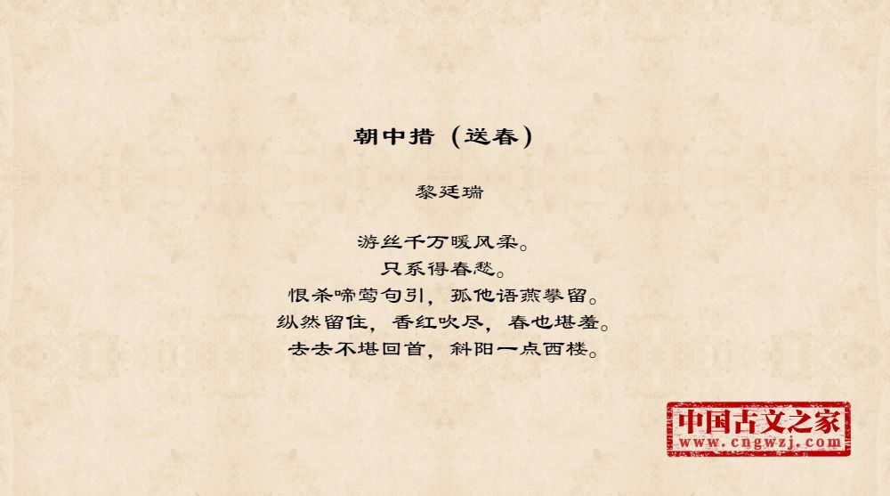 《朝中措(送春)》的原文打印版(黎廷瑞)