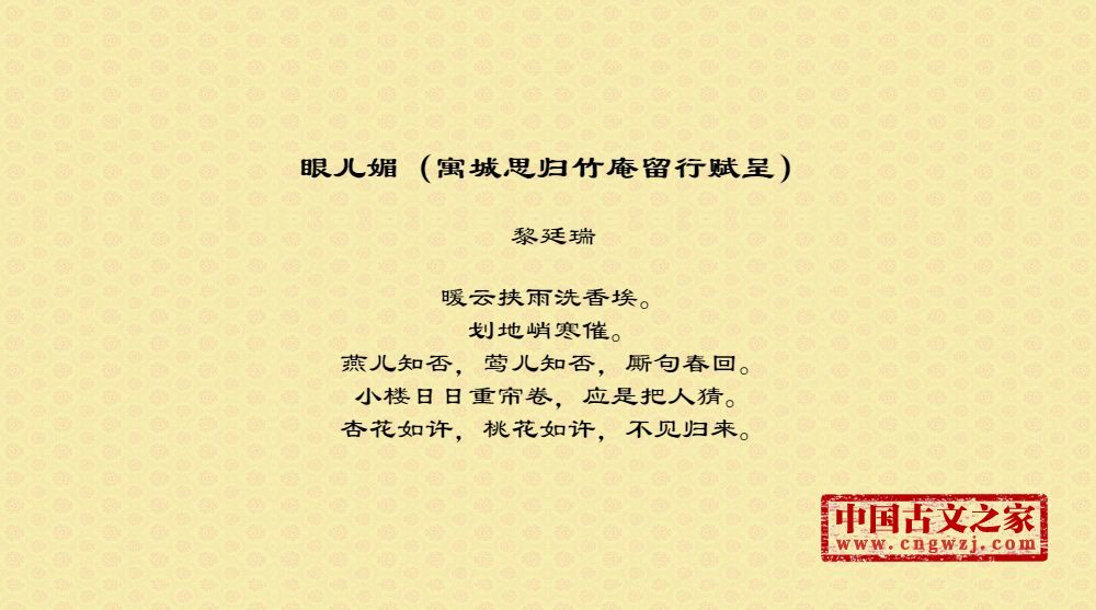 《眼儿媚(寓城思归竹庵留行赋呈)》的原文打印版(黎廷瑞)