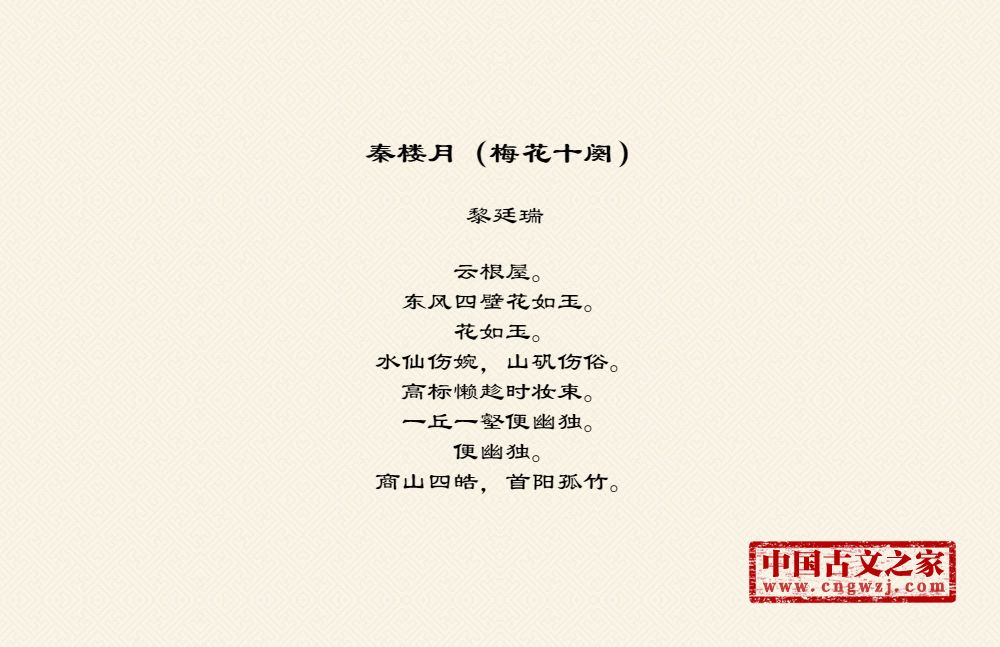 《秦楼月(梅花十阕)》由黎廷瑞创作