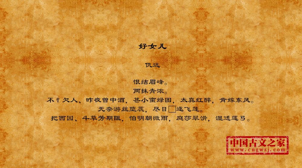 仇远(1247年~1326年),字仁近,一字仁父,钱塘(今浙江杭州)人。因居余杭溪上之仇山,自号山村、山村民,人称山村先生。宋元代文学家、书法家。元大德年