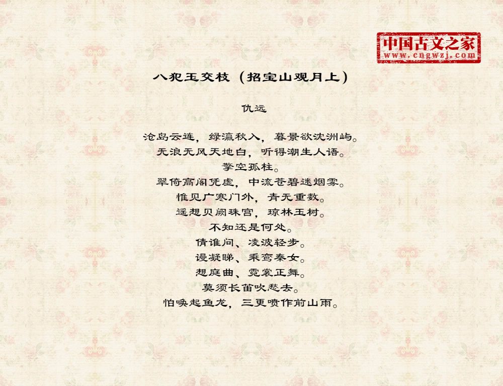 《八犯玉交枝(招宝山观月上)》的原文打印版(仇远)