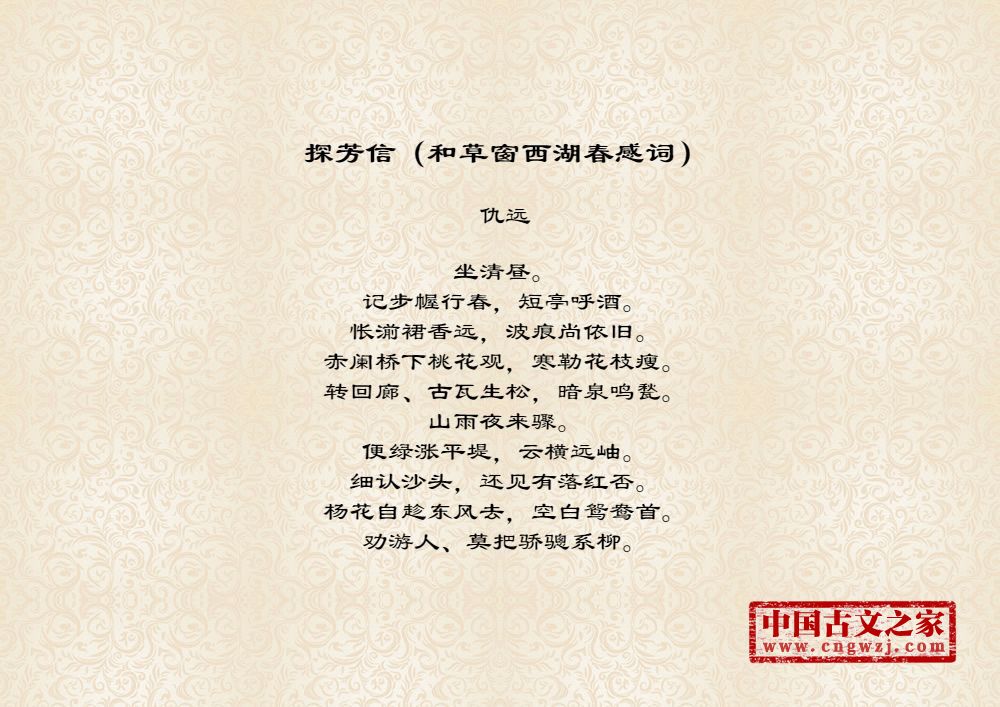 《探芳信(和草窗西湖春感词)》的原文打印版(仇远)