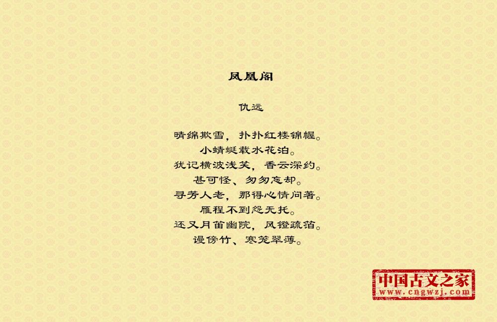 仇远(1247年~1326年),字仁近,一字仁父,钱塘(今浙江杭州)人。因居余杭溪上之仇山,自号山村、山村民,人称山村先生。宋元代文学家、书法家。元大德年