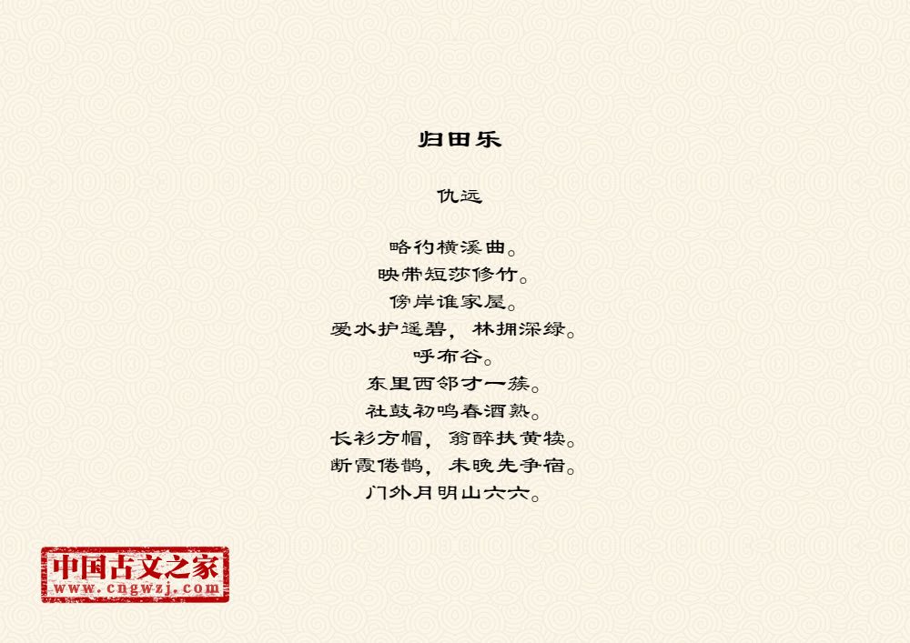 略彴横溪曲。映带短莎修竹。傍岸谁家屋。爱水护遥碧,林拥深绿。呼布谷。东里西邻才一簇。社鼓初鸣春酒熟。长衫方帽,翁醉扶黄犊。断霞倦鹊,未晚先争宿。门外月明山六六。