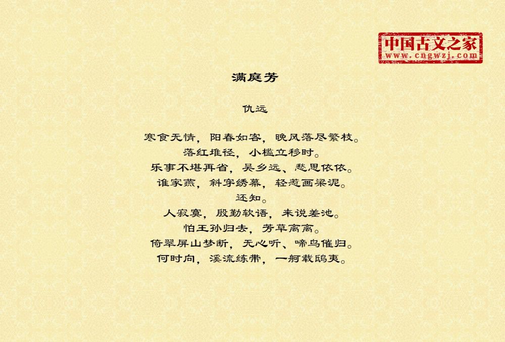 寒食无情,阳春如客,晚风落尽繁枝。落红堆径,小槛立移时。乐事不堪再省,吴乡远、愁思依依。谁家燕,斜穿绣幕,轻惹画梁泥。还知。人寂寞,殷勤软语,来说差池。怕王孙归去,芳草离离。倚翠屏山梦断,无心听、啼鸟催归。何时向,溪流练带,一舸载鸱夷。
