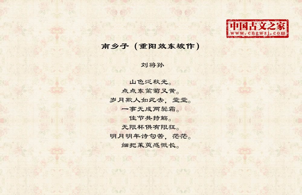 《南乡子(重阳效东坡作)》由刘将孙创作