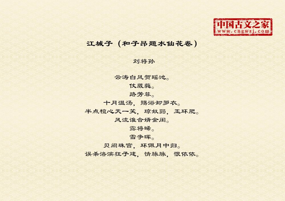《江城子(和子昂题水仙花卷)》的原文打印版(刘将孙)