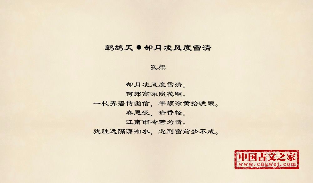 《鹧鸪天·却月凌风度雪清》的原文打印版(孔榘)