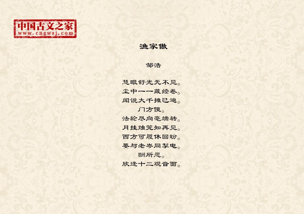 《渔家傲》的原文打印版(邹浩)