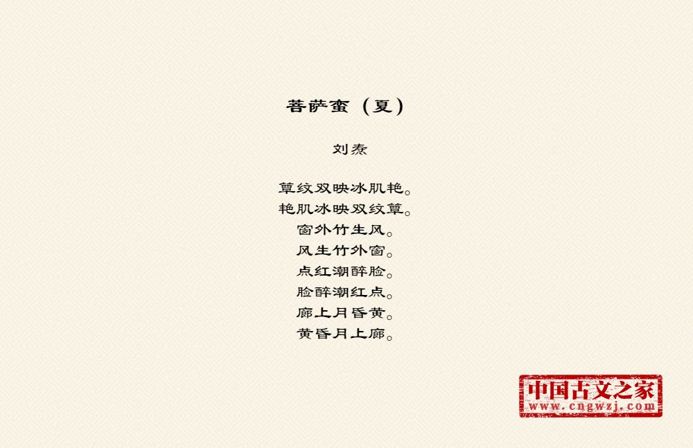 《菩萨蛮(夏)》的原文打印版(刘焘)