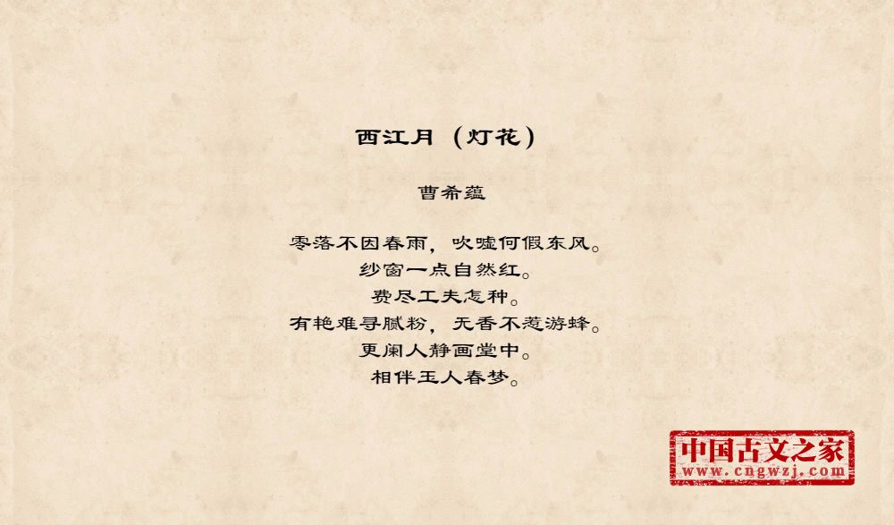 《西江月(灯花)》的原文打印版(曹希蕴)