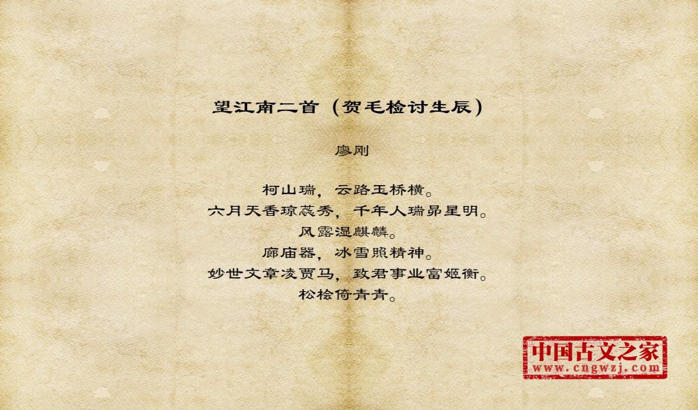 《望江南二首(贺毛检讨生辰)》由廖刚创作