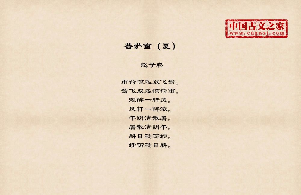 《菩萨蛮(夏)》的原文打印版(赵子崧)
