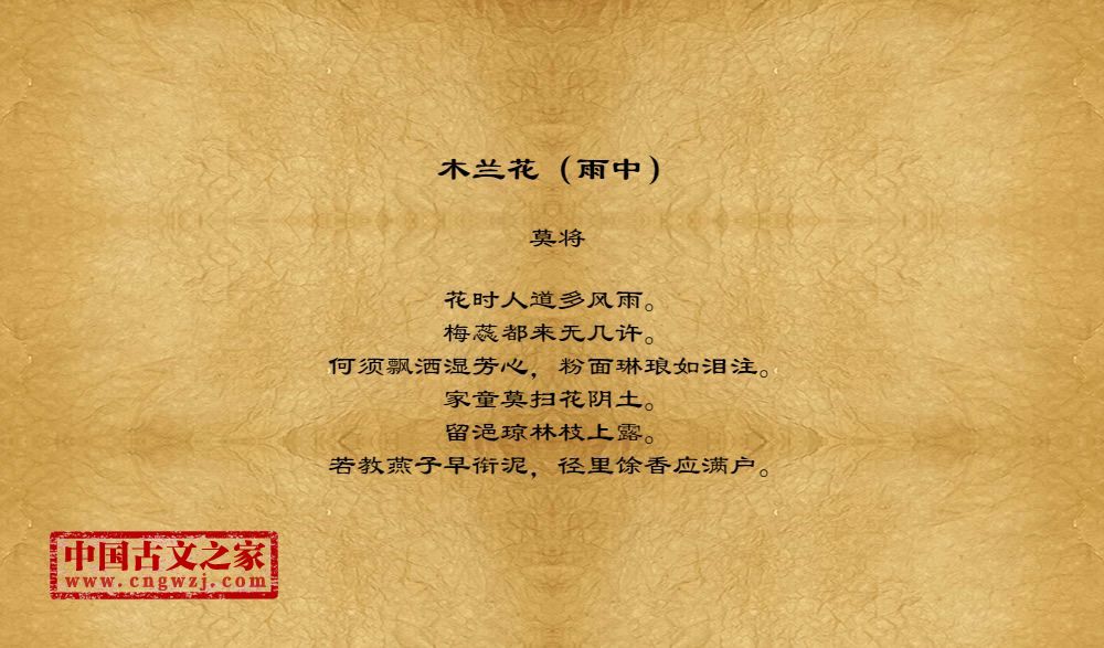 《木兰花(雨中)》的原文打印版(莫将)