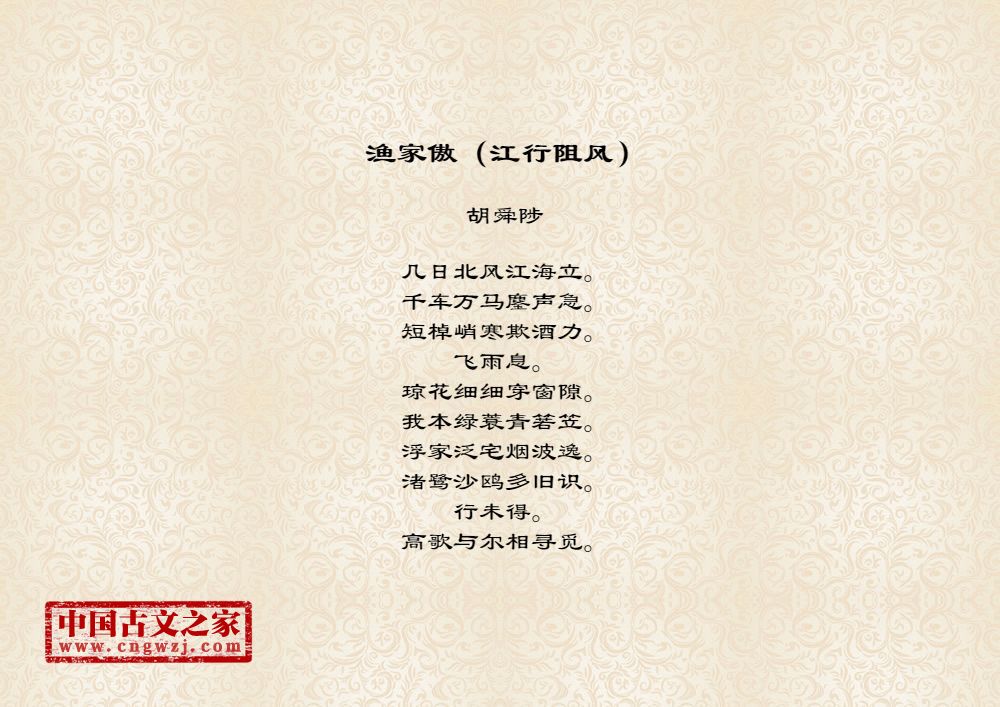 《渔家傲(江行阻风)》的原文打印版(胡舜陟)