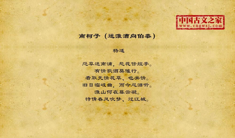 《南柯子(送淮漕向伯恭)》的原文打印版(杨适)