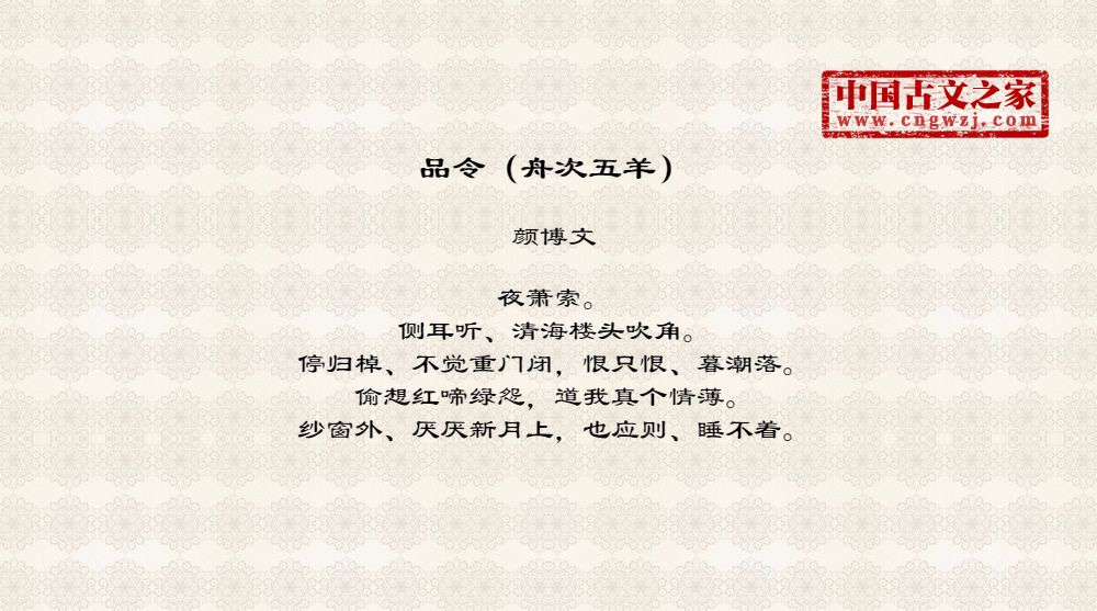 《品令(舟次五羊)》的原文打印版(颜博文)
