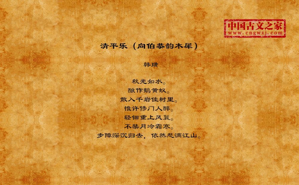 《清平乐(向伯恭韵木犀)》的原文打印版(韩璜)
