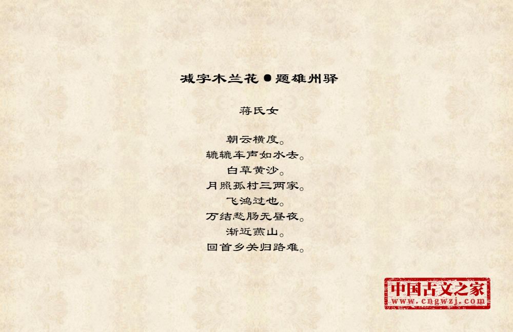 减字木兰花:词牌名。简称《减兰》。