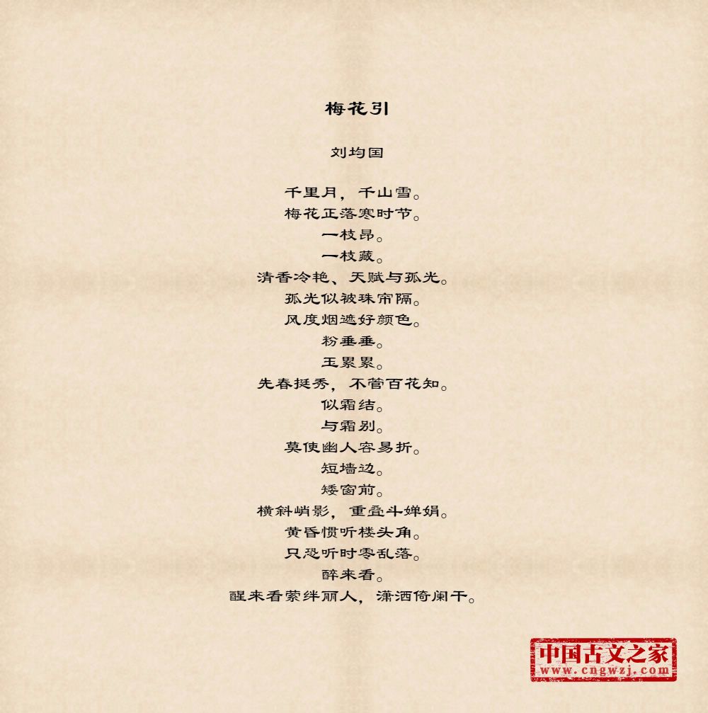 千里月,千山雪。梅花正落寒时节。一枝昂。一枝藏。清香冷艳、天赋与孤光。孤光似被珠帘隔。风度烟遮好颜色。粉垂垂。玉累累。先春挺秀,不管百花知。似霜结。与霜别。莫使幽人容易折。短墙边。矮窗前。横斜峭影,重叠斗婵娟。黄昏惯听楼头角。只恐听时零乱落。醉来看。醒来看萦绊丽人,潇洒倚阑干。