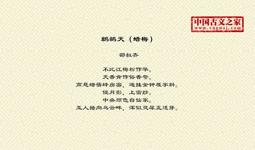 《鹧鸪天(蜡梅)》的原文打印版(邵叔齐)