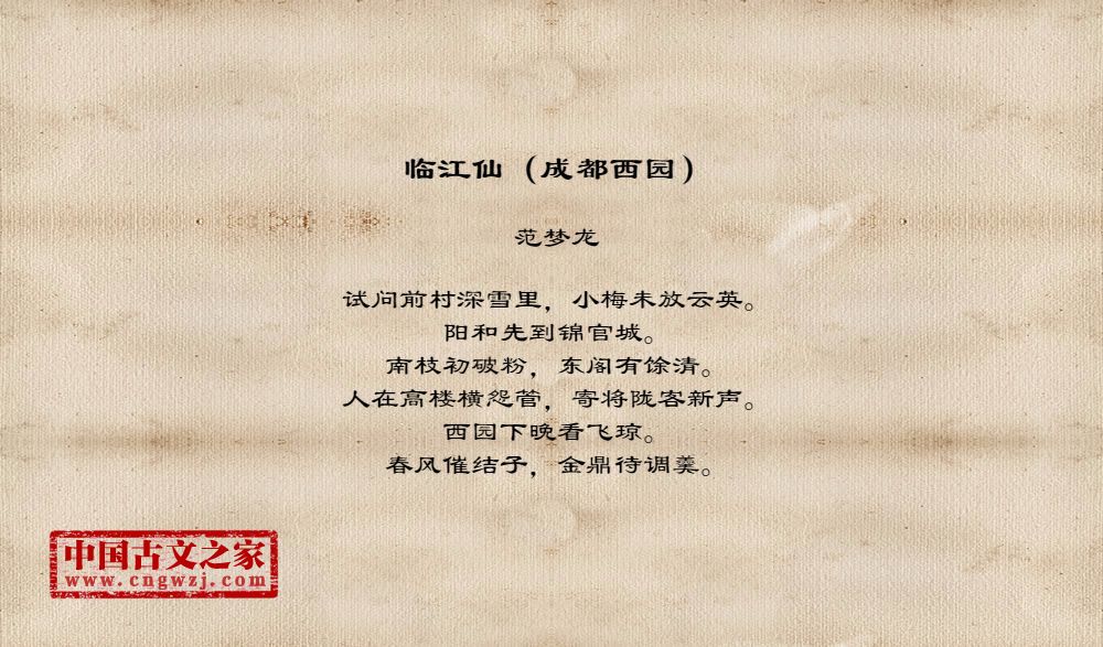 《临江仙(成都西园)》的原文打印版(范梦龙)