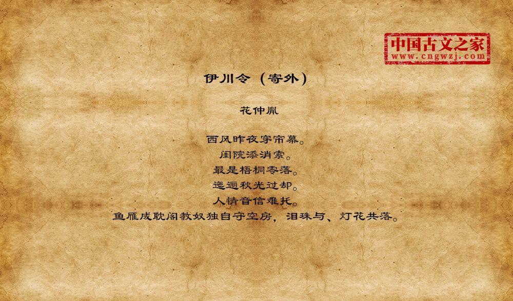 《伊川令(寄外)》的原文打印版(花仲胤)