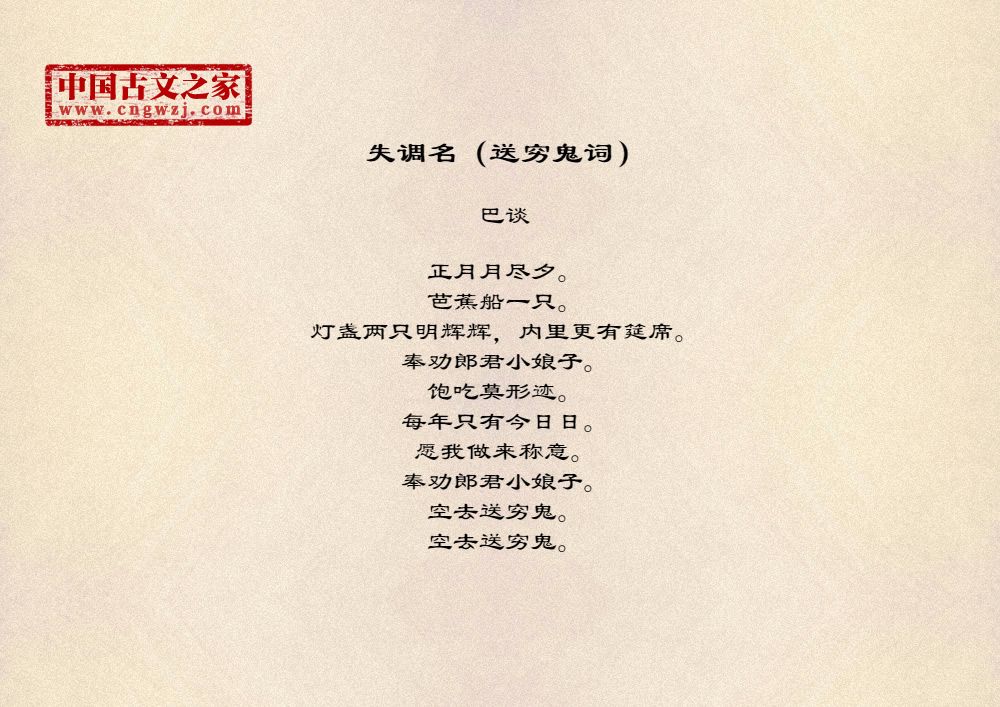《失调名(送穷鬼词)》的原文打印版(巴谈)
