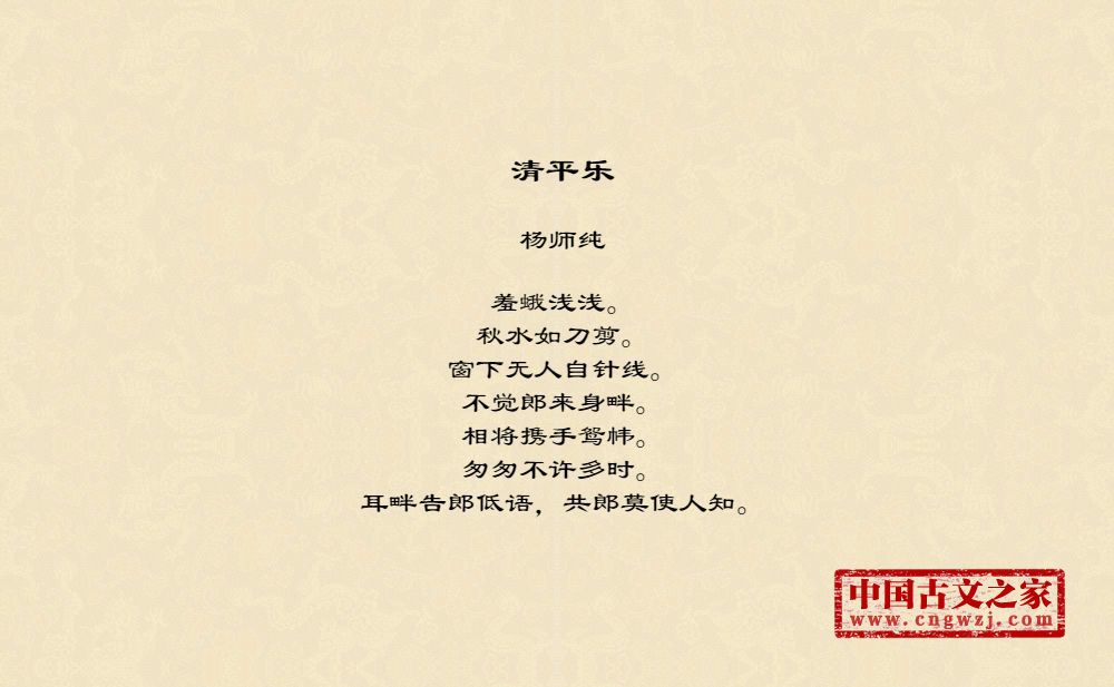 《清平乐》的原文打印版(杨师纯)
