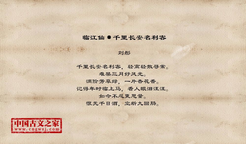 《临江仙·千里长安名利客》的原文打印版(刘彤)