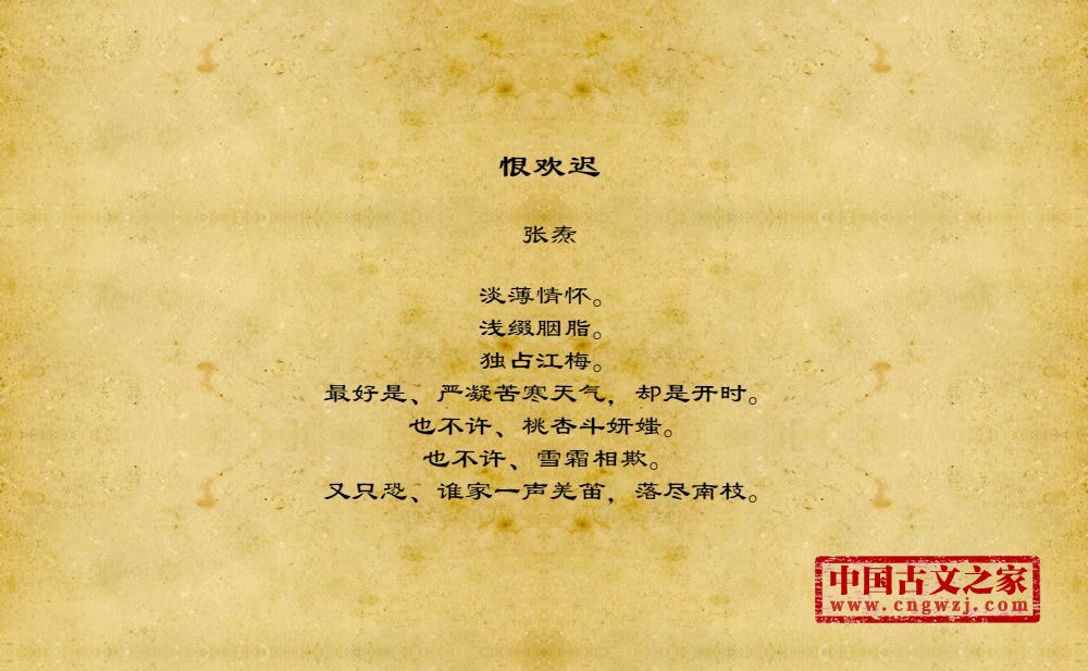 《恨欢迟》的原文打印版(张焘)