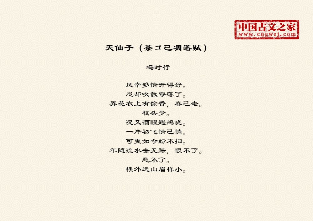 《天仙子(荼コ已凋落赋)》的原文打印版(冯时行)