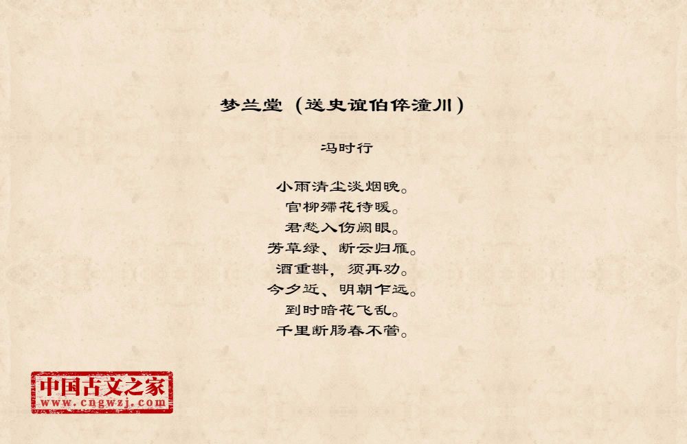 《梦兰堂(送史谊伯倅潼川)》的原文打印版(冯时行)