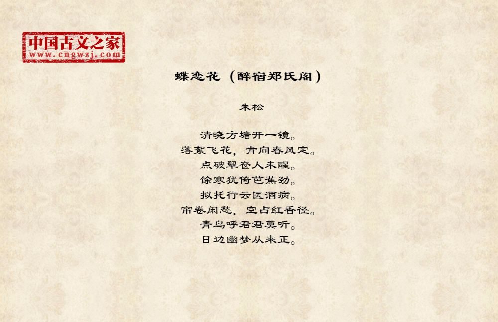 《蝶恋花(醉宿郑氏阁)》的原文打印版(朱松)