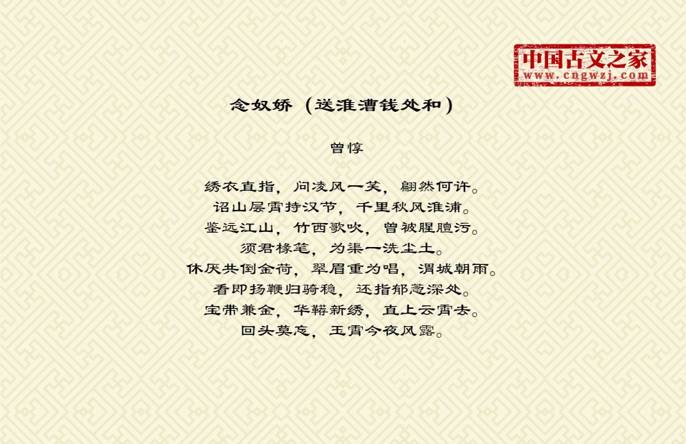 念奴娇(送淮漕钱处和)
