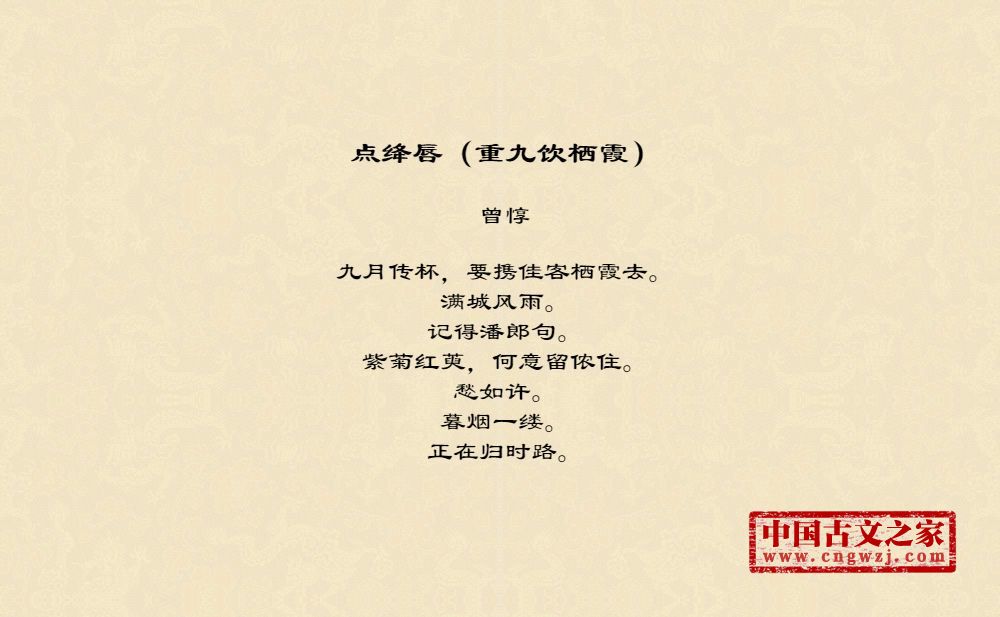 《点绛唇(重九饮栖霞)》的原文打印版(曾惇)