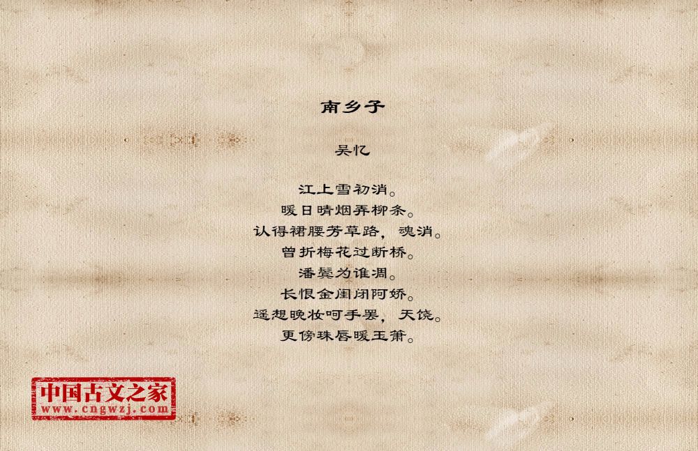 《南乡子》的原文打印版(吴忆)