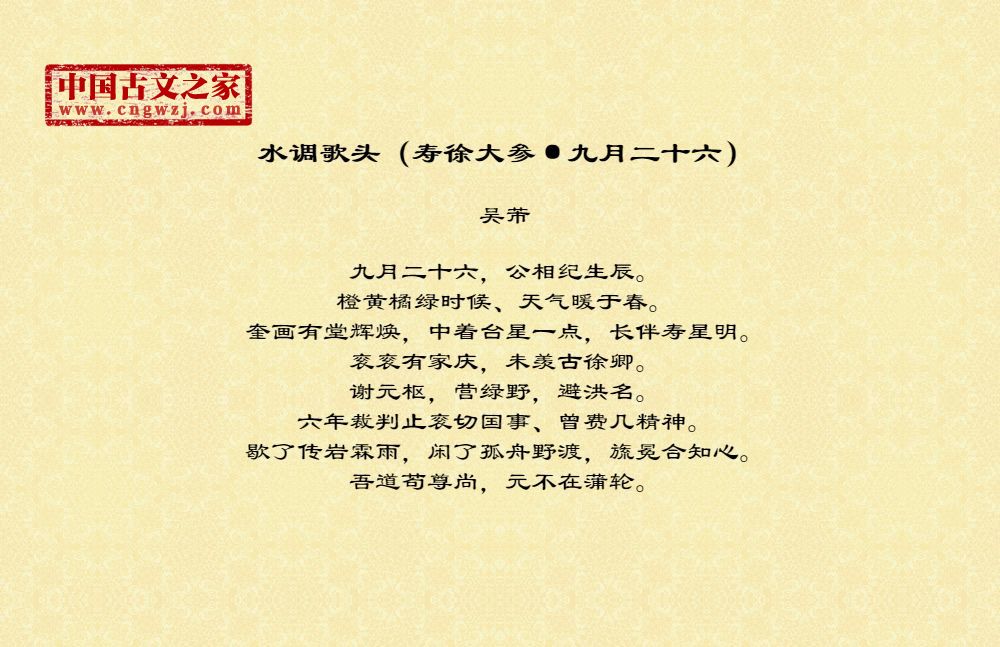《水调歌头(寿徐大参·九月二十六)》的原文打印版(吴芾)