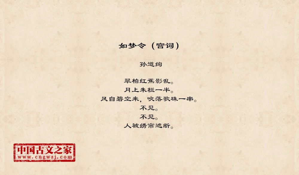 《如梦令(宫词)》的原文打印版(孙道绚)