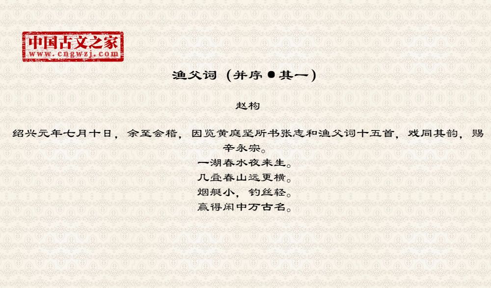 《渔父词(并序·其一)》由赵构创作